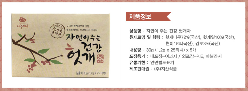 Æ÷Àå´ÜÀ§º° ¿ë·®(Áß·®) 30g (1.2g x 25Ƽ¹é) x 5°³